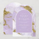 Dieses individuelle Design mit einer Alkoholfarbe, die in den Farbtönen von sanften Lavendeln bis hin zu lila lila mit glitzernden Goldakzenten abstrakt ist, eignet sich perfekt für ein romantisches und elegantes Hochzeitsthema. Die bogenförmige Hochzeitseinladung, die hier gezeigt wird, stellt eine Vorlage zur Verfügung, mit der Sie ganz einfach Ihre eigenen Namen, Ihr Hochzeitsdatum und Ihre Veranstaltungsdetails hinzufügen können. Durchsuchen Sie ID990 um weitere Stücke in diesem koordinierten Set zu sehen.