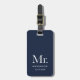Dieses elegante, minimalistische Flitterwochengepäck sagt "Mr." in einem weißen, modernen, hochmodernen Luxus-Schriftart auf dunkelmarineblau und hat auch einen Platz für Ihren Nachnamen und Hochzeitstag.