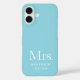 Dieser elegante, minimalistische Telefonkoffer sagt "Mrs." in einem weißen, modernen Luxus-Schriftart auf Robineiblau und hat auch einen Platz für Ihren Nachnamen und Hochzeitstag.
