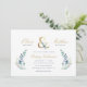 Personalisiert mit Ihren Veranstaltungsdetails, erschwingliche, individuell bedruckte Hochzeitseinladungen. Dieses elegante Design besticht durch ein Imitat mit goldfarbenem Ampersand mit zarten blauen und grünen Aquarellbildern auf weißem Hintergrund. Verwenden Sie die Designtools, um den Text anzupassen, bearbeiten Sie die Schriftart und Farben oder fügen Sie Ihre eigenen Fotos zu einer klassischen und stilvollen Hochzeitseinladung zu erstellen.