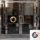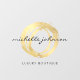 Ein Bio gemalter Kreis in Imitaten aus metallischem Gold wird mit Ihrem Firmennamen kombiniert, um ein luxuriöses Logo auf diesem personalisierten Fensterdekor zu schaffen. Eine großartige Beschilderung für Boutiquen, Salons, Nagelkünstler, Haarstylisten, Pop-up Shops, Schmuckläden, Einzelhandelsflächen und vieles mehr. Originale Kunst und Design © 1201AM Design Studio | www.1201am.com