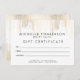 Eine Reihe kaskadierender Imitate mit goldenen Konfetti-Punkten kreieren ein auffälliges Design auf dieser stilvollen Designer Geschenkgutscheine-Karte. Ein zarter Hintergrund fallender Konfetti-Punkte in Imitat Gold gibt die Illusion von Schimmer. Ideal für Schminkkünstler, Haarstylisten, Schönheitssalons, Boutiquen und vieles mehr. Bitte wenden Sie sich an den Designer, wenn Sie Hilfe bei längeren Namen oder speziellen Schreibweisen benötigen. Kunst und Design © 1201AM Design Studio | www.1201am.com