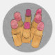 Eine Kollektion hübscher Lippensticks vor dem Hintergrund stilisierter Kissenmuster.