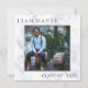 Eine klassische Einladung mit einem schwarz-weißen Marmor-Design mit grauem Serifentext. Akzente von Blau auf der Vorder- und Rückseite.