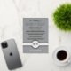 Wählen Sie diese eleganten dunkelgrauen mit echten Goldfolie-Hochzeitskarten für einen luxuriösen Blick auf Ihre Zeremonie. Diese Reihenfolge der Servicekarten verbindet das klassische Aussehen eines Doppelmonogramms auf der blassgrauen Band mit dem Siegel-Design am unteren Ende und eine Mischung aus Schriftart, die dem Hochzeitskalender ein luftiges, modernes Ambiente verleiht. Jedes Textfeld ist leicht zu verändern, sodass Sie das perfekte Programm erstellen können. Zusätzlich zu den echten Goldfolien-Textbereichen auf der Vorderseite, kehren diese Reihenfolge der Service Hochzeitskarten zu einem großen Textvorlagenbereich mit einem leicht grauen Schriftart auf Tiefgrau, wo Sie zusätzliche Details für Ihre Hochzeitsgäste hinzufügen können. Erstellen Sie Ihre eigenen luxuriösen mit Monogramm Hochzeitsprogramme in Graufolie und Goldfolie, maßgeschneidert und bedruckt für Sie, für eine schöne Ergänzung zu Ihrer Hochzeitssuite.