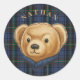 Luxe Preppy Plaid Teddy Bear Head Runder Aufkleber