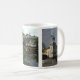 Tasse mit drei Fotos von Luxemburg: 1. Der Platz Guillaume II (Quadrat Williams II), mit der Statue des Großherzogs William II vor dem Rathaus (Hotel de Ville). 2. Das Grund (oder Gronn), ein malerisches Viertel in Luxemburg auf den Banken des Alzette Flusses, mit im Hintergrund auf einer Klippe das Ville Haute, das historische Stadtzentrum von Luxemburg. 3. Der Turm der monumentalen Headquarters der Luxemburg-Staats-Sparkasse (alias Spuerkees oder Banque und Caisse D'Epargne de L'Etat), auf dem Platzde Metz.