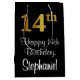 Dieses raffinierte, elegante und luxuriöse Geschenktütendesign mit Geburtstagsgeschenk weist eine große Ordnungsnummer mit einem goldenem Farbverlauf von Imitationen/Imitaten auf, die Geburtstagsgrüßbotschaft "Happy 14. Geburtstag" sowie einen benutzerdefinierbaren Empfängernamen in einem Schriftart im Skriptformat. Es hat auch einen schwarzen Hintergrund. Eine stilvolle Geburtstagsgeschenktasche wie diese könnte eine lustige Art sein, ein Geschenk oder Geschenk für jemanden zu verpacken, der seinen vierzehnten Geburtstag feiert. [~Z0000514]