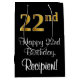 Dieses raffinierte, luxuriöse und stilvolle Geburtstagsgeschenke-Design verfügt über eine große Ordnungsnummer "22." mit einem vergoldeten Aussehen von Imitationen/Imitaten, sowie die Geburtstagsgrüßbotschaft "Happy 22. Geburtstag" und einen benutzerdefinierten Empfängernamen in einem Schriftart im Skriptstil. Es hat auch einen schwarzen Hintergrund. Eine Geburtstagsgeschenktüte wie diese könnte eine lustige Art sein, ein Geschenk oder Geschenk für jemanden zu verpacken, der seinen 22. Geburtstag feiert. [~Z0000514]