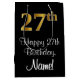 Dieses elegante, luxuriöse und stilvolle Geburtstagsgeschenke-Design verfügt über eine große Ordnungsnummer "27." mit einem vergoldeten Aussehen von Imitationen/Imitaten, zusätzlich zur Geburtstagsgrüßbotschaft "Happy 27. Geburtstag" und einem personalisierten Empfängernamen in einem skriptartigen Schriftart. Es hat auch einen schwarzen Hintergrund. Eine raffinierte Geschenktasche wie diese kann verwendet werden, wenn man ein Geschenk oder Geschenk zu Ehren von jemandem siebenundzwanzigsten Geburtstag. [~Z0000514]