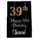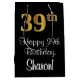 Dieses raffinierte, luxuriöse und elegante Geburtstagsgeschenke-Design verfügt über eine große Ordnungsnummer "39.", die ein vergoldetes Aussehen von Imitationen/Imitaten hat, sowie die Geburtstagsgrüßbotschaft "Happy 39. Geburtstag" und einen benutzerdefinierten Empfängernamen in einem skriptartigen Schriftart. Der Hintergrund ist schwarz. Eine stilvolle Geburtstagsgeschenktüte wie diese könnte eine lustige Art sein, ein Geschenk oder Geschenk zum Feiern eines neununddreißigsten Geburtstags einzupacken. [~Z0000514]