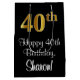 Dieses stilvolle, luxuriöse und elegante Geschenktütendesign mit Geburtstagsgeschenk weist eine große Ordnungsnummer "40." auf, die ein vergoldetes Aussehen mit Imitaten/Imitationen hat, sowie die Geburtstagsgrüßbotschaft "Happy 40th Birthday" und einen benutzerdefinierbaren Empfängernamen in einem skriptartigen Schriftart. Der Hintergrund ist schwarz. Eine Geburtstagsgeschenktüte wie diese kann bei Geschenken oder Geschenken zum 40. Geburtstag von jemandem verwendet werden. [~Z0000514]