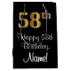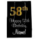 Dieses elegante, stilvolle und raffinierte Geburtstagsgeschenkdesign weist eine große Ordnungsnummer "58." auf, die ein goldenes Aussehen von Imitaten/Nachahmungen aufweist, sowie die Geburtstagsgrüßbotschaft "Happy 58. Geburtstag" und einen benutzerdefinierbaren Empfängernamen in einem Schriftart im Skriptformat. Der Hintergrund ist schwarz. Eine Geburtstagsgeschenktüte wie diese könnte eine lustige Art sein, ein Geschenk oder Geschenk für jemanden einzupacken, der seinen achtundfünfzigsten Geburtstag feiert. [~Z0000514]