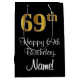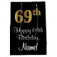 Dieses stilvolle, raffinierte und elegante Geschenktütendesign mit Geburtstagsgeschenk weist eine große Ordnungsnummer "69." auf, die einen vergoldeten Stil von Imitation/Imitaten aufweist, sowie die Geburtstagsgrüßbotschaft "Happy 69. Geburtstag" und einen benutzerdefinierbaren Empfängernamen in einem skriptartigen Schriftart. Der Hintergrund ist schwarz. Eine luxuriöse Geschenktasche wie diese kann verwendet werden, wenn Geschenke umhüllt werden, die jemandem zur Feier seines 69. Geburtstages gegeben werden. [~Z0000514]