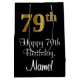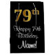 Dieses raffinierte, stilvolle und luxuriöse Geschenktütendesign weist eine große Ordnungszahl "79." auf, die ein goldenes Farbmuster nachahmt, zusammen mit der Geburtstagsgrüßbotschaft "Happy 79. Geburtstag" und einem benutzerdefinierbaren Empfängernamen in einem Schriftart im Skriptstil. Es hat auch einen schwarzen Hintergrund. Eine elegante Geschenktasche wie diese kann benutzt werden, um ein Geschenk oder Geschenk zu Ehren von jemandem 79. Geburtstag zu geben. [~Z0000514]