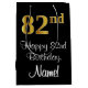 Dieses stilvolle, luxuriöse und raffinierte Geschenktütendesign mit Geburtstagsgeschenk weist eine große Ordnungsnummer "82." auf, die ein vergoldetes Aussehen von Imitationen/Imitaten hat, sowie die Geburtstagsgrüßbotschaft "Happy 82. Geburtstag" und einen editierbaren Empfängernamen in einem Schriftart im Skriptstil. Der Hintergrund ist schwarz. Ein Geburtstagsgeschenktasche wie dieser kann bei Geschenken oder Geschenken zum 82. Geburtstag von jemandem verwendet werden. [~Z0000514]