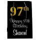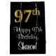 Dieses elegante, luxuriöse und stilvolle Geburtstagsgeschenke-Design verfügt über eine große Ordnungsnummer "97.", die ein goldenes Aussehen mit Imitaten/Imitationen hat, sowie die Geburtstagsgrüßbotschaft "Happy 97. Geburtstag" und einen benutzerdefinierten Empfängernamen in einem Schriftart im Skriptstil. Der Hintergrund ist schwarz. Eine Geschenktasche wie diese kann verwendet werden, wenn Sie ein Geschenk oder Geschenk zu Ehren des 97. Geburtstages von jemandem geben. [~Z0000514]
