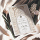 Die luxuriöse, islamisch inspirierte Hochzeitseinladung lädt Sie zu einer wirklich eleganten Hochzeit ein. Diese Einladung ist mit aufwändigen blumigen und geometrischen Mustern geschmückt und mit opulenten Goldfolienakzenten geschmückt, die das detaillierte Design unterstreichen. Die Vorderseite zeigt ein aufwändiges Arkadenmotiv in Elfenbein-, Beige- und Weichgoldtönen, das einen raffinierten und zeitlosen Look schafft. Der Rücken setzt das Thema mit einem nahtlosen Blumendesign und einem Monogramm fort, was es perfekt für eine raffinierte und unvergessliche Hochzeit macht. Ideal für Paare, die die Schönheit der islamischen Kunst und Architektur schätzen, Set diese Einladung den Ton für ein großes Fest.