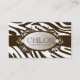 Luxuriös weißes Schokolade311 zebra-Monogramm Visitenkarte