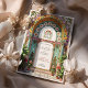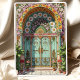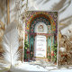 Diese atemberaubende Jugendstil-Hochzeitsreise vereint luxuriöse Blumenmuster und architektonische Eleganz. Das Design präsentiert einen blühenden Bogen mit rosa Lilien, gelben Marigolds, weißen Gänseblüten und üppig grünen Blätter, die verzierte Details inspiriert von der Vintagen botanischen Ästhetik. Die symmetrische Anordnung umfasst komplexe Linien, dekorative Säulen und leuchtende goldene Highlights. Ein romantisches Sonnenburstmotiv und elegante Schnörkel tragen zur zeitlosen Eleganz des Hauses bei, ideal für Paare, die eine naturlich inspirierte Hochzeitsstiftung mit einer raffinierten und großartigen künstlerischen Touch suchen.