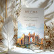 Set die Bühne für eine unvergessliche Hochzeitsfeier mit dieser "Save the Date"-Karte, die eine atemberaubende Aquarelldarstellung von Dubais ikonischem Atlantis The Palm enthält. Die Vorderseite besticht durch ein sanftes Morgenlicht mit Pastellblau, Sandbeige und warmen Korallen, die ein Gefühl von Eleganz und Charme schaffen. Hinter dem Atlantis verbirgt sich ein blauer Himmel, der einen Hauch von Mystik und Romantik verleiht. Ideal für Paare, die eine luxuriöse Hochzeit in Urlaubsort in Dubai planen, kombiniert diese Karte Kunst mit Eleganz und macht sie zu einem perfekten Sake für die Gäste.