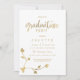 Luxuriös modern, weiß und gold sind mit einem eleganten, einfachen Goldblatt-Stammdesign mit handgeschriebener Druckschrift aus Gold ausgestattet. Diese Einladung zur Glam Graduation Party ist der perfekte Ausdruck für jede spezielle Veranstaltung eines Mädchens. Passen Sie dieses Design mit Ihren Details und Monogramm Initial an.
