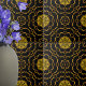 Tauchen Sie ein in die Welt der Opulenz mit diesem eleganten und luxuriösen dekorativen Fliesendesign. Mit höchster Präzision gefertigt, präsentiert es ein nahtloses Muster, das mit goldverziertem Set aus Imitaten und einer faszinierenden schwarzen Kulisse geschmückt ist.