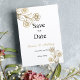 Luxuriöse einfache kühn schwarz, weiß und Gold Typografie Blumenzehen Save the Date Einladung. Diese elegante Blume lädt jedes elegante und raffinierte Glam-Mädchen zum Verweilen ein. Dieses Design eignet sich ideal für ein trendiges und stilvolles Party. Passen Sie dieses Design mit Ihrer Nachricht und personalisierten Informationen an. Alle Designs sind gedruckt.