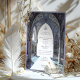 Diese elegante islamische Hochzeitseinladung besticht durch ein atemberaubendes Design, das von der Moschee-Architektur und der Blumenkunst inspiriert wurde. Intrikierte Details in sanften Farbtönen wie Himmelblau, Lavendel und Elfenbein schaffen eine ruhige und elegante Atmosphäre. Die Gewölbe und die zarten Blumenmotive spiegeln eine harmonische Mischung aus islamischer Kunst und Jugendstil wider. Mit seiner ruhigen Palette und den luxuriösen Details ist diese raffinierte Einladung perfekt für eine zeitlose und kulturell inspirierte Hochzeitsfeier.