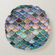 Luxuriöse mehrfarbige Glitzer Mermaid Scales Rundes Kissen