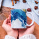 Luxuriöse Personalisiert Blue & Gold Watercolor Ta Kaffeetasse