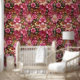 Luxuriöse rosa goldfarbene botanische Wand bedeckt