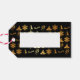 Geschenke Tags mit einem luxuriösen Look in Schwarz mit in Imitaten goldenen X-mas Icons wie Kerze, Schneeflocke, Baum und Rentier.