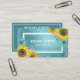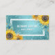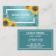 Eine skurrile, feminine, florale Visitenkarte mit aquamarinem, blauen Glitzer und Foliengrafik, umgeben von Aquarellsonnenblumen. Fügen Sie Ihren eigenen Namen und Beruf (Haarstylistin, Makeup-Künstler, Kosmetologe, Lash-Künstler, etc.) zu den vorderen Vorlagen hinzu. Ihre Geschäftsinformationen können in den Vorlagen auf der Kartenrückseite zur Verfügung gestellt werden.