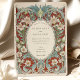Diese atemberaubende Hochzeitseinladung präsentiert ein aufwändiges Jugendstil-Design mit zarten, weißen Lilien, umgeben von üppig grünen Blätter und verziertem Scrollwork. Der rote Hintergrund fügt dem weichen Elfenbeinrahmen einen kühlen und romantischen Kontrast hinzu und schafft ein elegantes und luxuriöses Ambiente. Die Vorderseite präsentiert die Hochzeitsdetails, die mit einem üppigen Blumenmotiv geschmückt sind, während die Rückseite ein raffiniertes Liliendesign hervorhebt, das diesem Stück zeitlose Schönheit verleiht. Ideal für Paare, die eine naturgetreue, Vintage oder klassische Hochzeitsästhetik suchen, verbindet diese Einladung zarte florale Eleganz mit der Opulenz des Jugendstils.