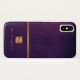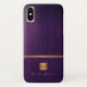 Exklusiv aussehende Büros oder mit Monogramm Telefonzelle mit einem vergoldeten Kupferquadrat aus Kupfermetall mit Ihren Monogramm-Namensinitialen und einem glitzernden Streifen über einem lila indigo Imitat Lederhintergrund. ++++++++++++++ Geeignet für kleine Unternehmen, Firmenfachleute oder selbstständige Geschäftsleute, Stylist- und Markenfachleute, Makeup-Künstler oder Schönheitssalons, Boutique- oder Ladenmanager. ++++++++++++++++ Bitte beachten Sie, dass die Ledertextur und die Glitzer-Funkeleffekte PRINTED sind.