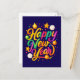 Verleihen Sie Ihren Neujahrsfeierlichkeiten mit diesem lebendigen Neon-„Frohes Neues Jahr“-Typografie-Design einen Farbtupfer.