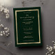 Ein luxuriöses dunkles Grün und Gold 50. Hochzeitsfeier Einladung. Das Hotel eignet sich hervorragend für ein Party zum Jubiläum. Das romantische minimalistische Design besticht durch ein hübsches und elegantes, schlichtes Goldrahmen-Design auf dunkelgrünem Hintergrund. Passen Sie dieses Design mit Ihrer Nachricht und personalisierten Informationen an. Alle Designs sind gedruckt.