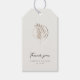 Ausgeklügeltes Hochzeitsgeschenk-Tag mit minimalistischem Zweig-Design auf der Vorderseite und einem simulierten 3D-Effekt fließende Skulptur auf der Rückseite in weißem Elfenbein. Personalisiert mit "Dankeschön", den Namen der Braut und des Bräutigams und dem Hochzeitstag fügt dieses elegante Etikett den Gaben und Geschenken eine raffinierte Touch hinzu, die natürliche Einfachheit mit zeitgenössischem Stil verbindet.