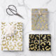 Luxuriöses Glam Gold Gray Leopard Print Set von 3 Wrapping Paper Sheets. Glam Imitate Goldleopardruck auf weißem, grauem und schwarzem Packpapier, Set von 3. Elegantes, modernes Muster.