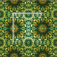 Nahtloses Dekormuster mit gelben Gradientenverzierungen auf grünem Hintergrund.
