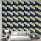 Luxuriöses Marmorschiff aus Navy Blue & Gold Leaf Tapete