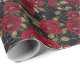 Luxuriöses Rote Rose- & Gold-Leaf-Muster auf schwa Geschenkpapier
