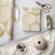 A sophisticated seamless geometric pattern wrapping paper featuring a grid of interlocking hexagons outlined in metallic gold. Each hexagon contains elegant linework and subtle geometric details, set against a softly textured cream and beige marble background. The blend of warm neutrals and gold accents gives this design a modern, refined, and luxurious feel.
