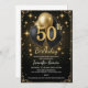 Luxury 50th Birthday Black Gold Balloon Glitter Einladung