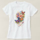 This women’s t-shirt features a vibrant butterfly and floral composition enhanced with delicate gold accents. The rich blend of pink, purple, and blue tones creates a bold yet elegant statement piece designed for confident, feminine style.
