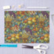 A richly layered fall pattern inspired by stained glass and Arts & Crafts design. Pumpkins, gourds, wheat sheaves, grape clusters, acorns, and vibrant autumn leaves intertwine through flowing vines and decorative florals. The jewel-toned palette of teal, sapphire blue, golden yellow, burnt orange, olive green, and plum creates depth and warmth, while bold outlines and curved forms give the design a handcrafted, artisanal feel.