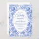 Luxury Deep Blue Toile Roses Baby Shower Invites Einladung