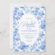 Luxury Deep Blue Toile Roses Bridal Shower Invite Einladung