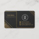 A premium luxury business card template featuring an elegant matte black background with refined metallic gold accents and geometric patterns. This editable design allows full customization — you can easily change the name, logo, and all contact details to match your brand identity. Perfect for professionals, entrepreneurs, and high-end brands looking for a sophisticated and modern card layout.